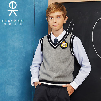 伊顿纪德儿童深灰毛背心校服马甲