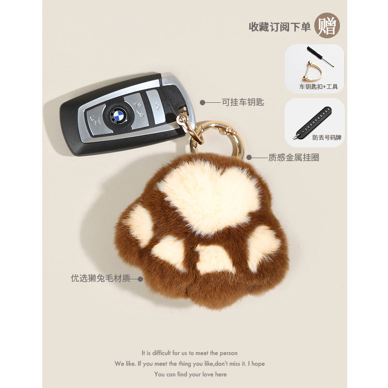 【弥野造物】獭兔毛猫爪汽车钥匙扣挂件女生精致可爱毛绒包包挂饰