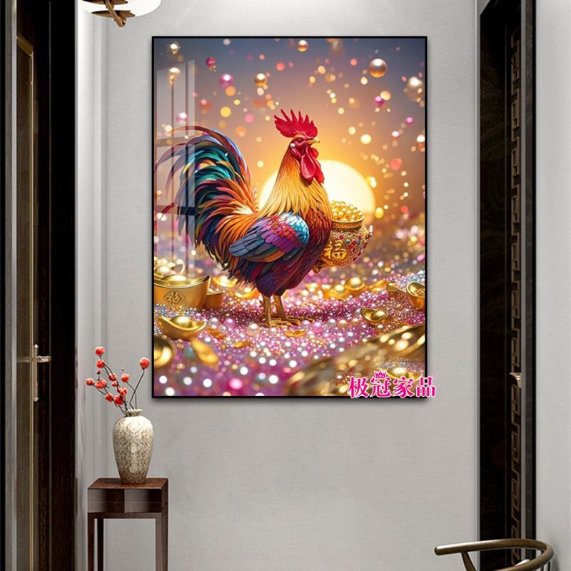 金鸡送福钻石画2025新款客厅手工贴钻画生肖鸡带框点钻十字绣满钻