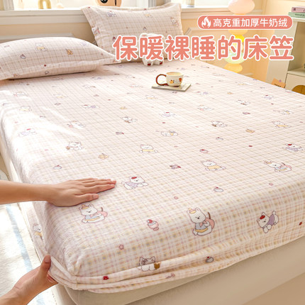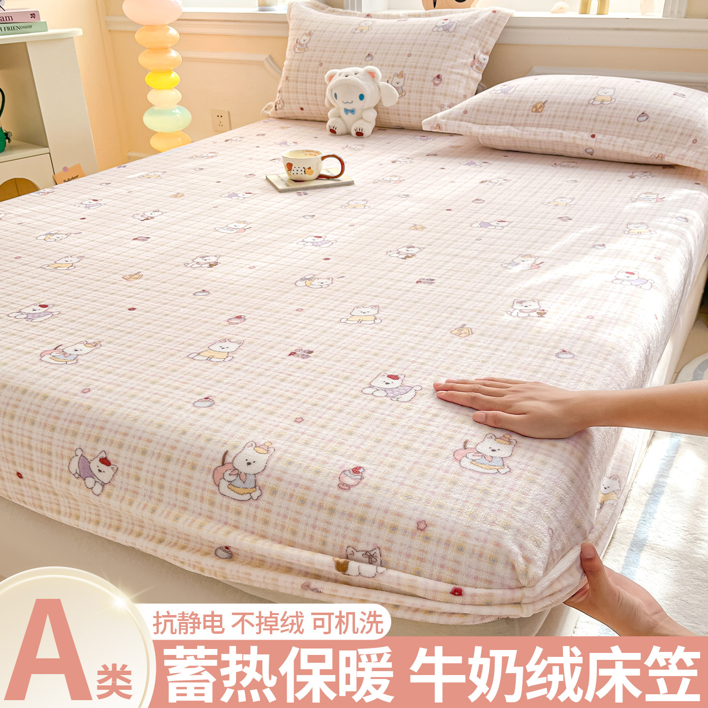珊瑚牛奶绒床笠单件冬季加绒保暖法兰绒床罩2025年新款床垫保护罩