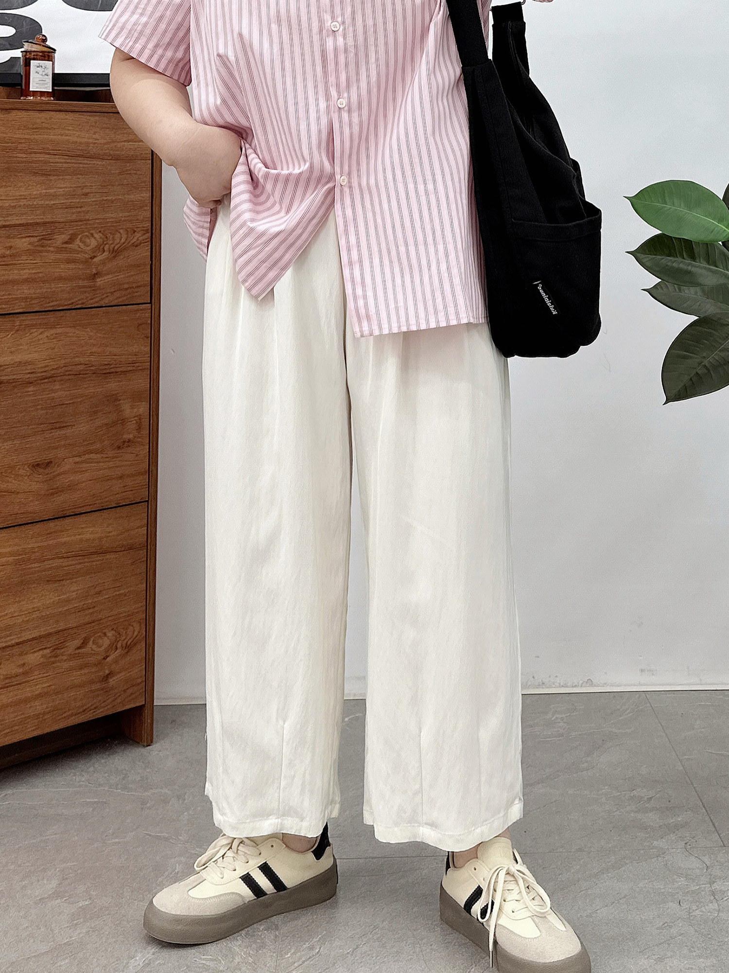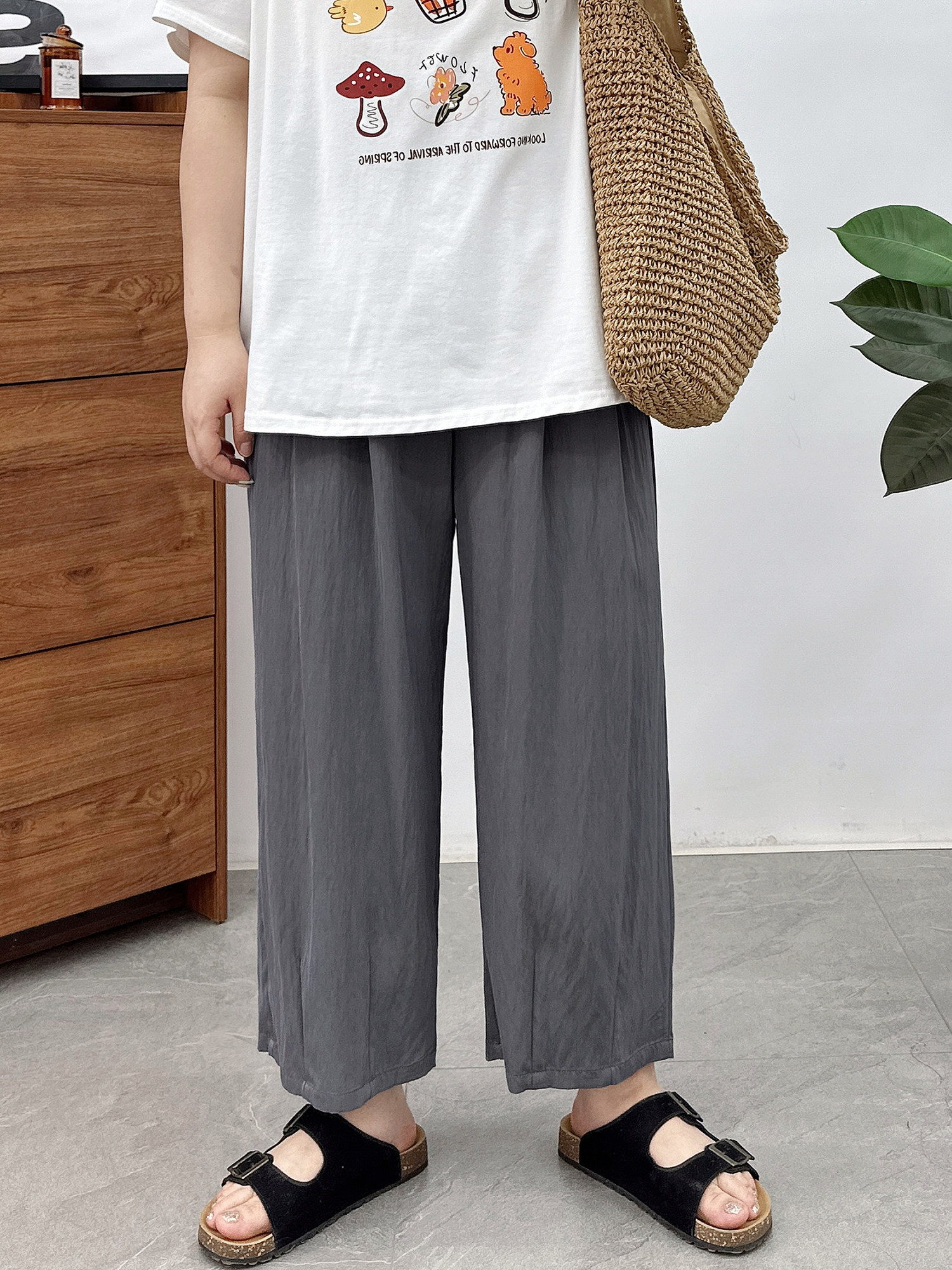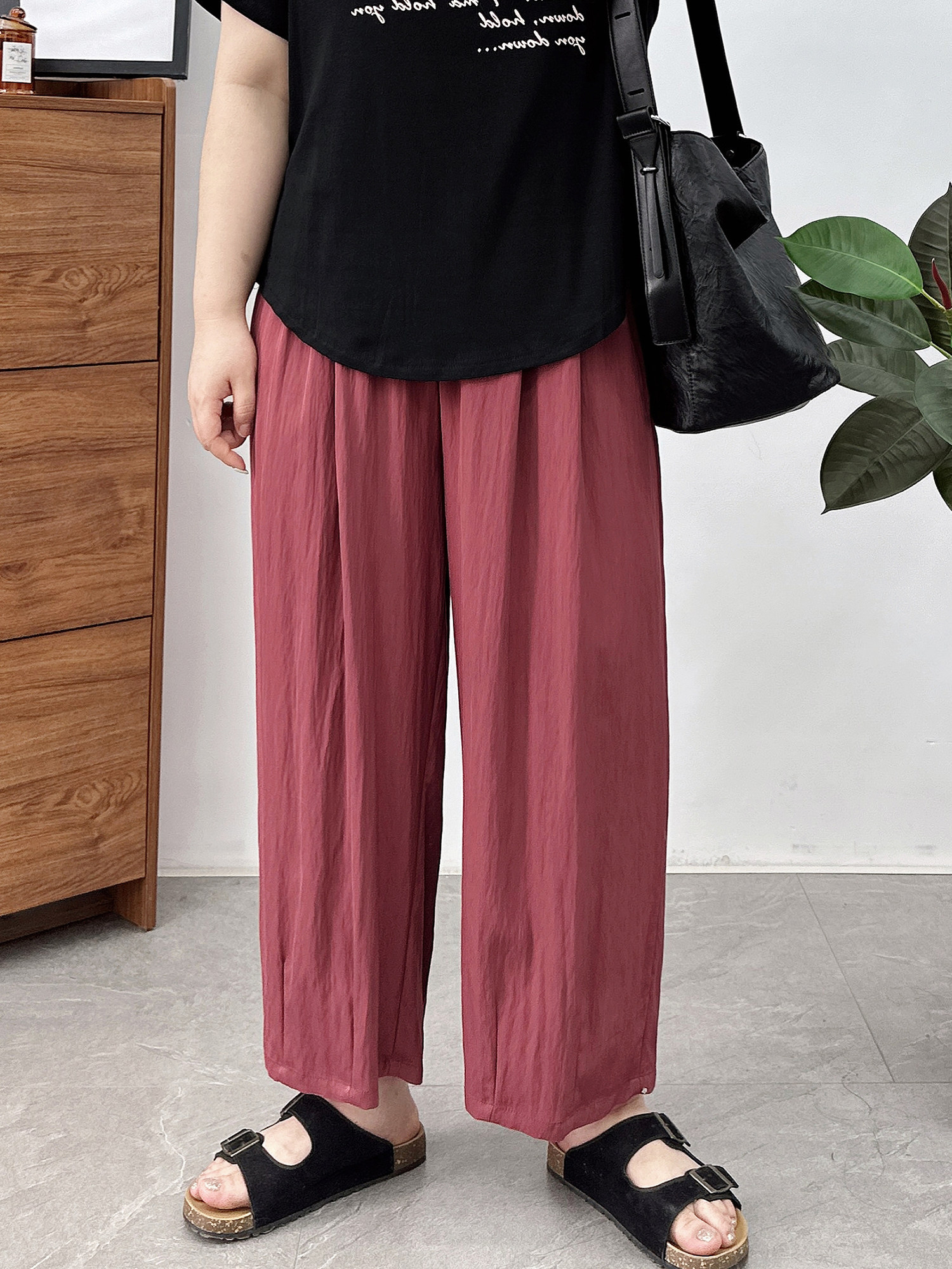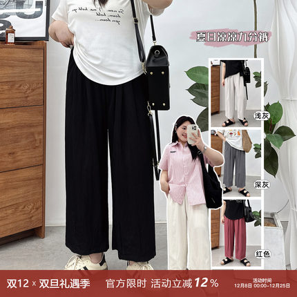 大码宽松休闲裤胖mm女夏季薄款高腰显瘦遮肉阔腿哈伦人棉九分裤子