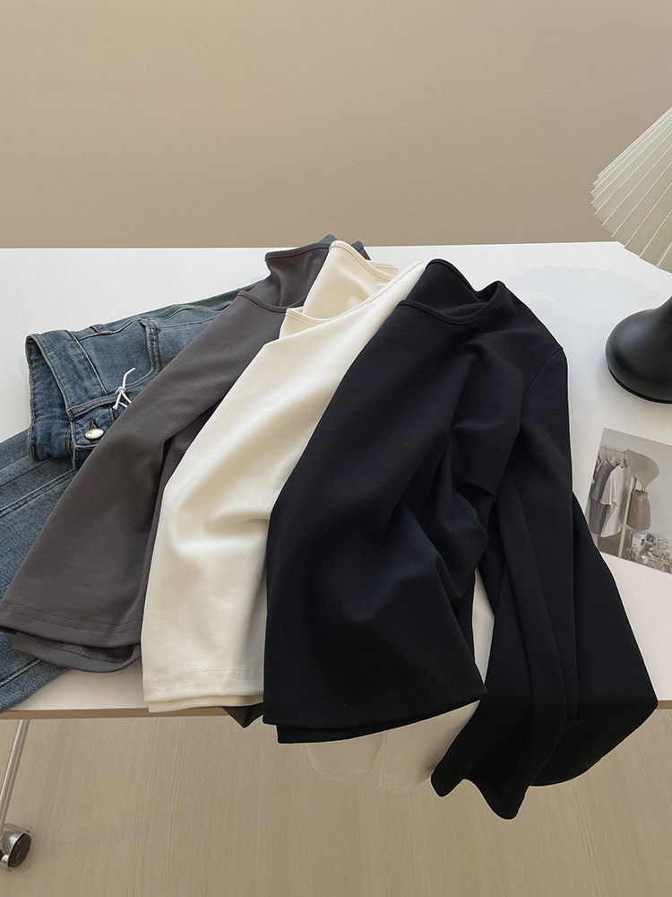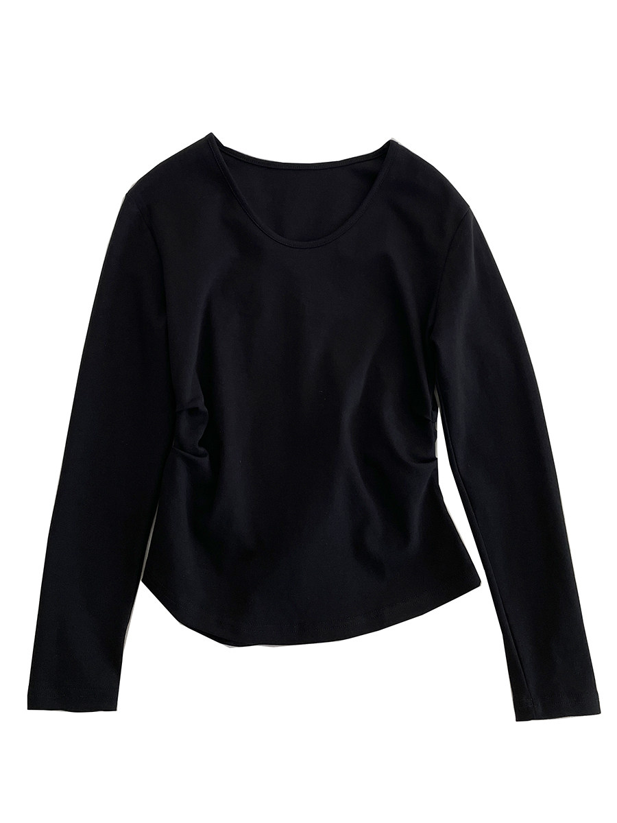 双侧褶皱收腰显瘦长袖打底衫