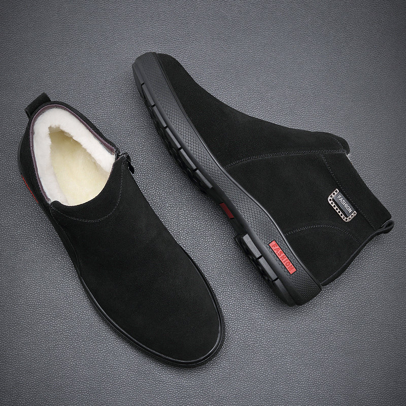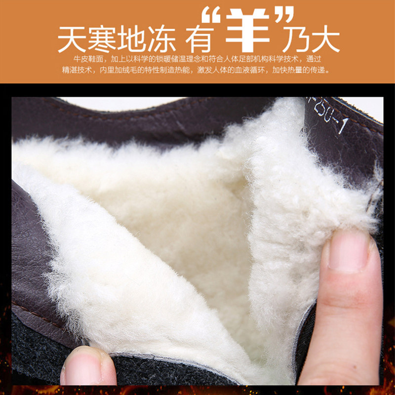 棉鞋男加绒保暖男冬季羊毛防滑磨砂真皮爸爸鞋高帮东北大棉皮鞋冬