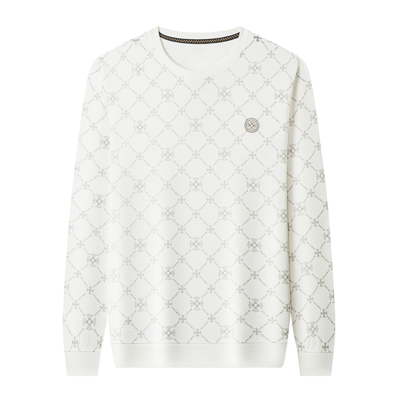 皮尔卡丹正品桑蚕丝长袖t恤男士2024新款法式印花圆领套头卫衣男