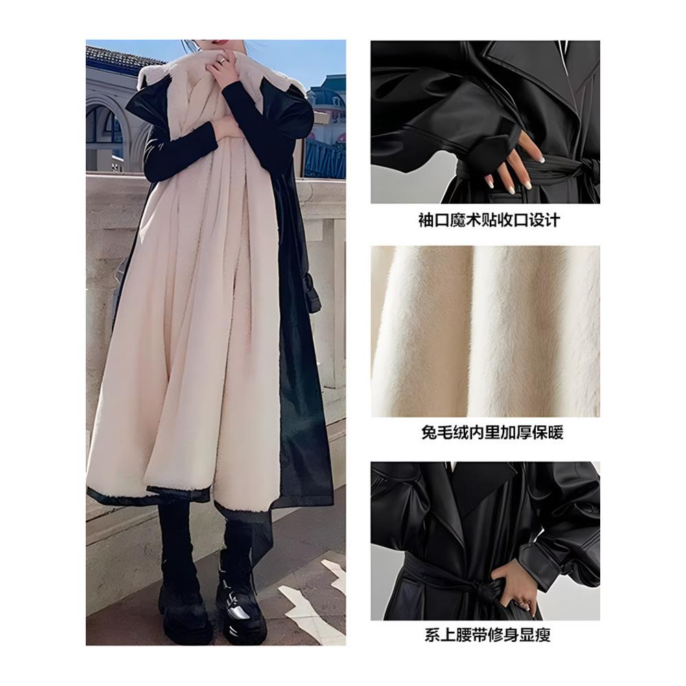高级感轻奢时尚皮大衣女宽松2025春秋新品韩版气质中长款风衣外套