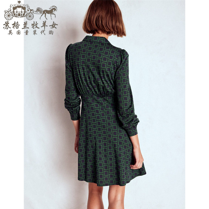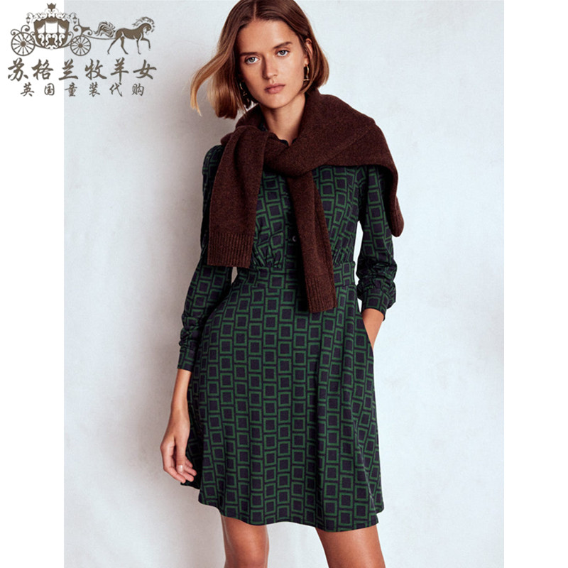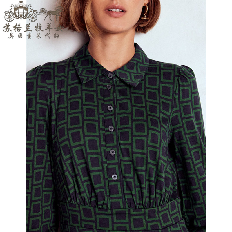 英国Boden代购 女装25秋冬新款 英伦印花长袖A字裙衬衫连衣裙子
