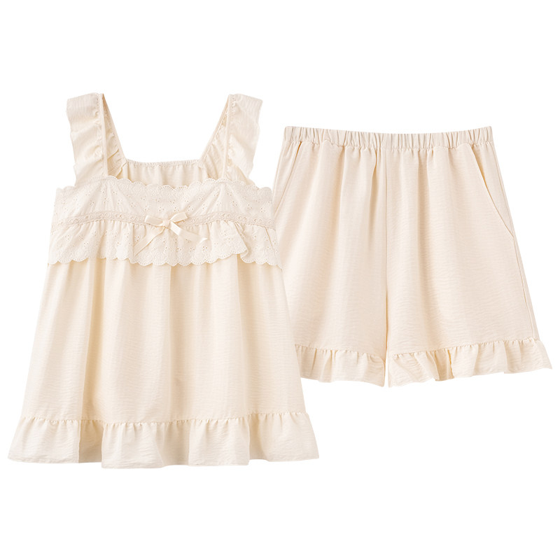 云朵棉睡衣女夏季无袖背心短裤纯棉甜美可爱公主风少女学生家居服