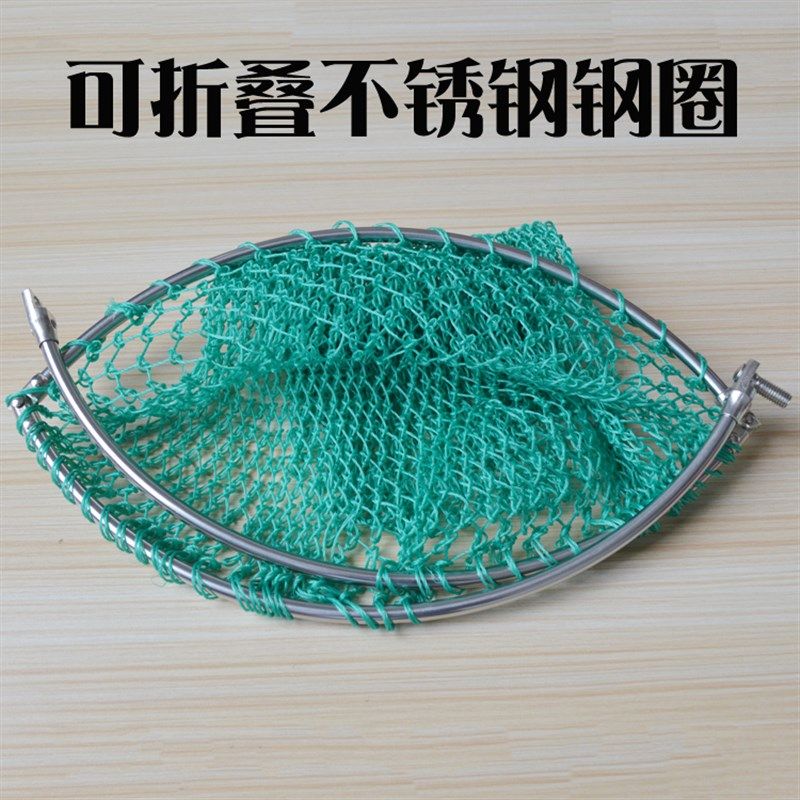 可折叠不锈钢空心实心抄网头尼龙胶丝网兜纯手工编织大马力钓鱼网