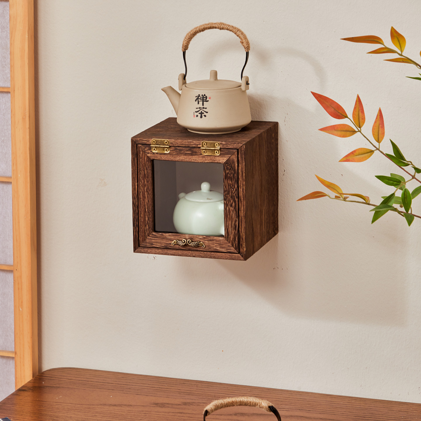 实木茶具置物架小型博古架茶杯架防尘展示架茶壶格子架壁挂多宝阁