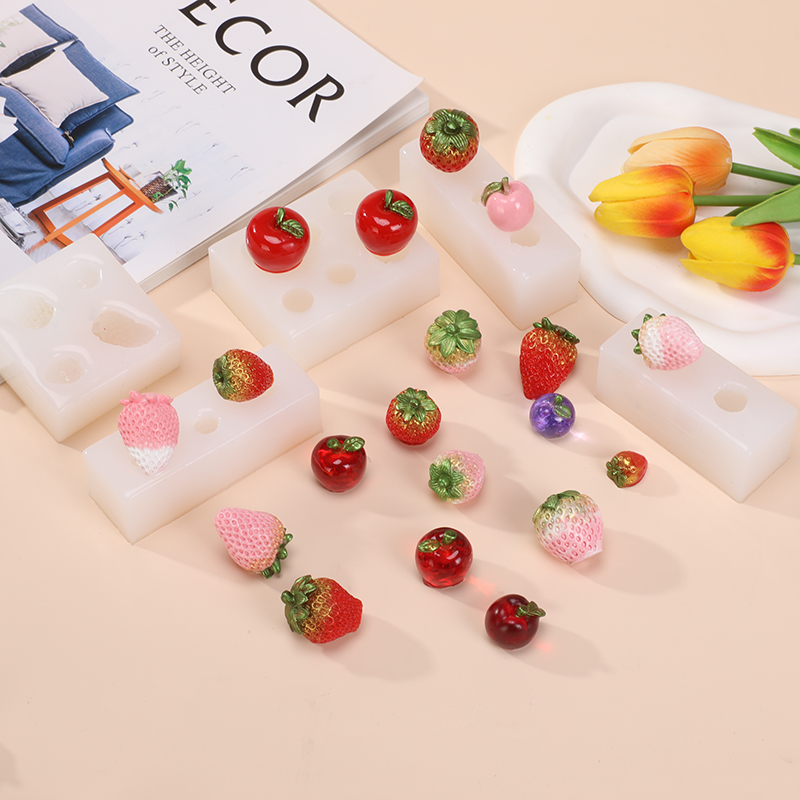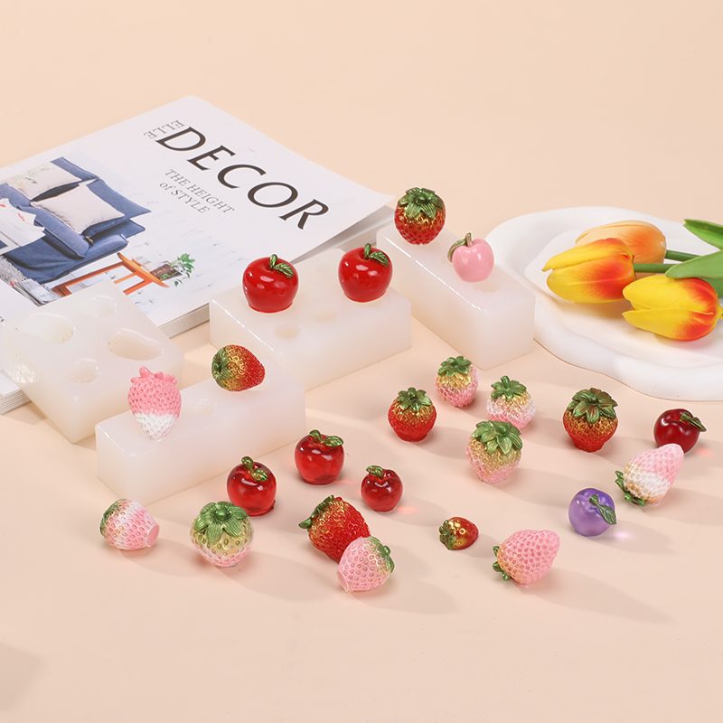 diy水晶滴胶可爱立体草莓苹果硅胶模具石膏翻模硅胶磨具材料