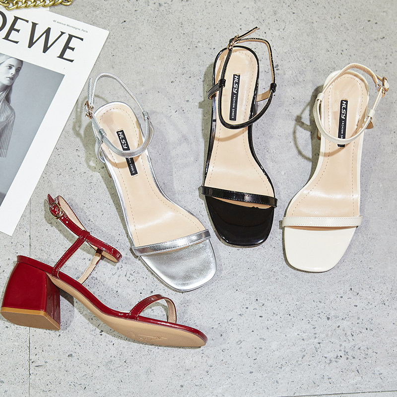 一字扣带凉鞋女夏2021新款红色粗跟网红时尚简约仙女风少女高跟鞋