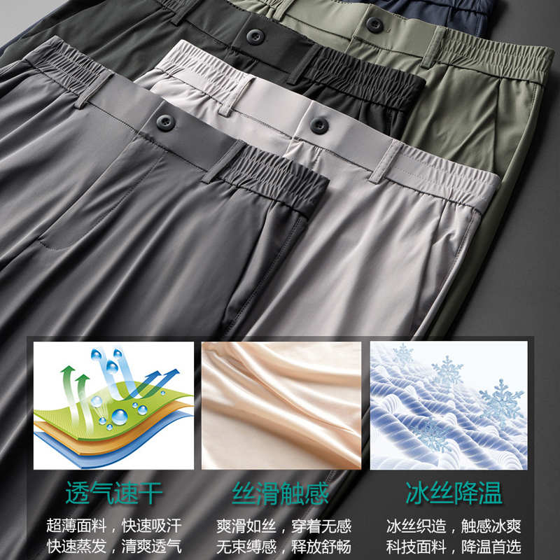 冰丝裤男夏季薄款速干裤大码西裤松紧腰裤子超薄垂感直筒休闲男裤