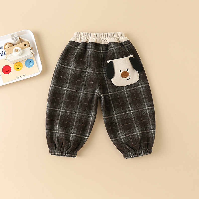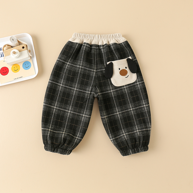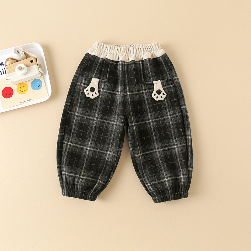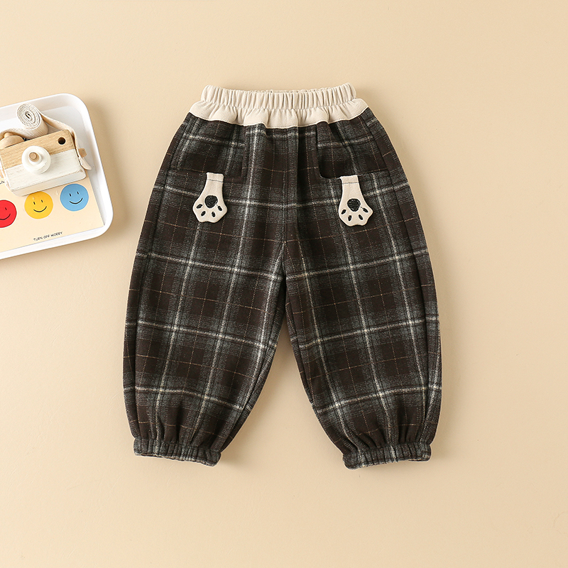 儿童加绒裤2025新款男宝宝一体绒休闲裤格子裤女童洋气卫裤加厚潮