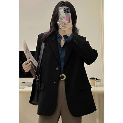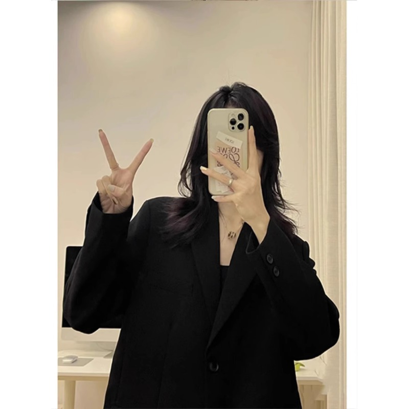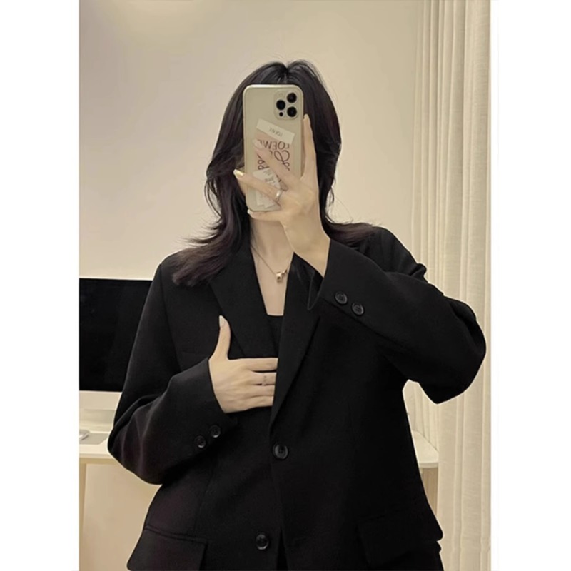 黑色正肩西装外套女小个子2025春秋季新款韩版高级感炸街休闲西服