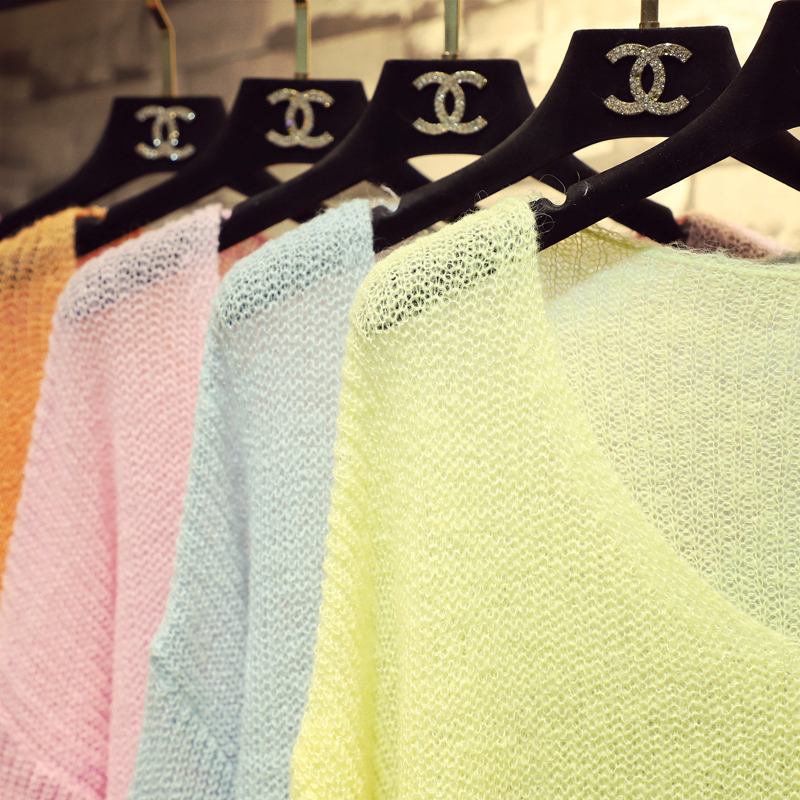 慵懒风宽松仿马海毛V领针织衫女