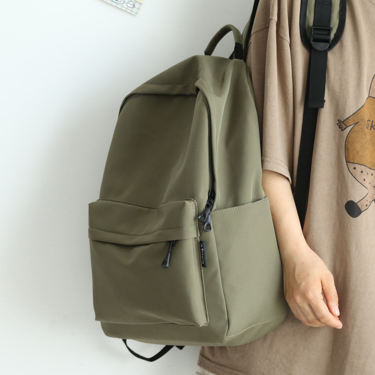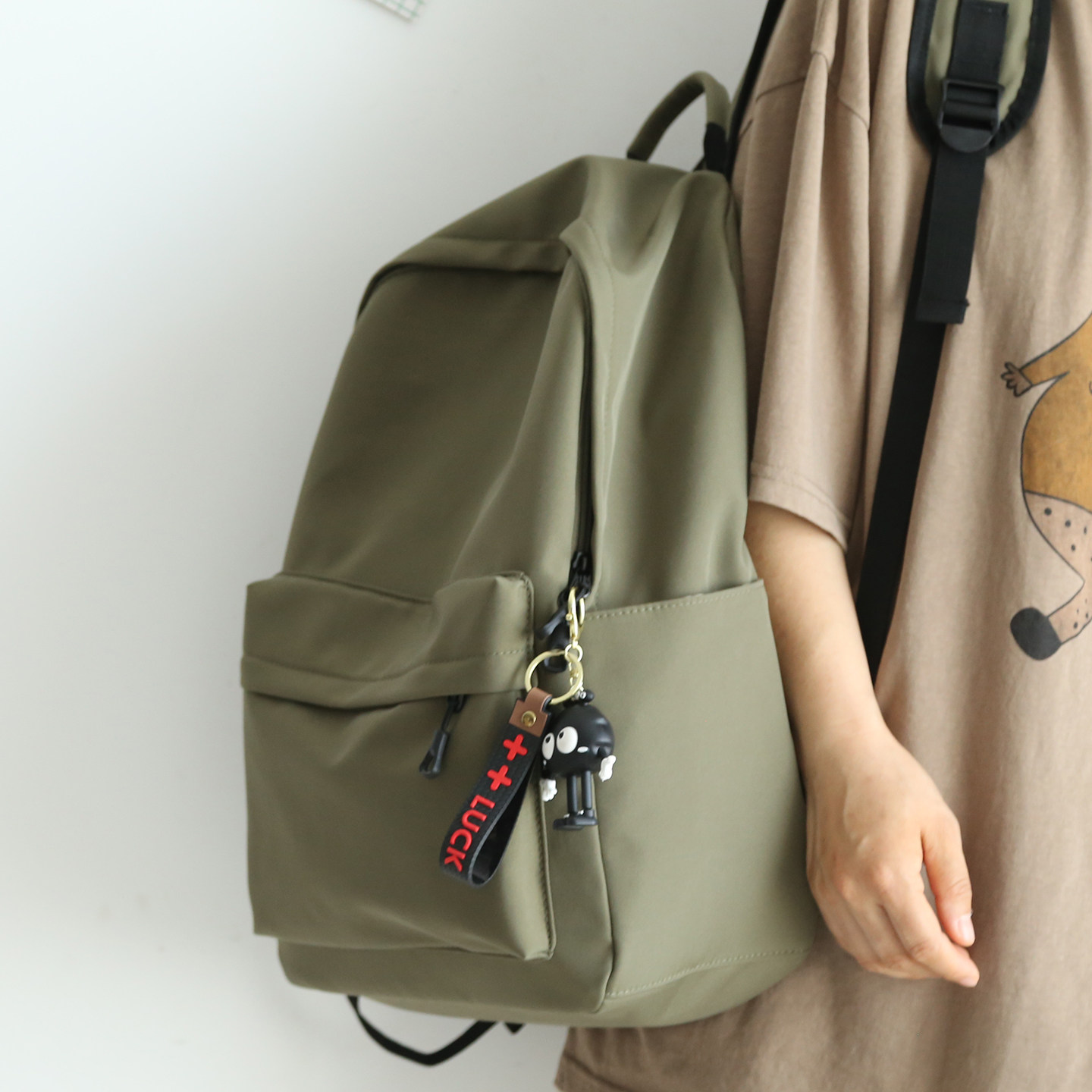 军绿色双肩包女书包初中生男大学生轻便旅游登山包旅行双肩背包