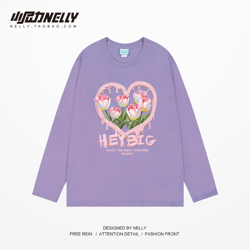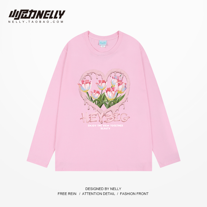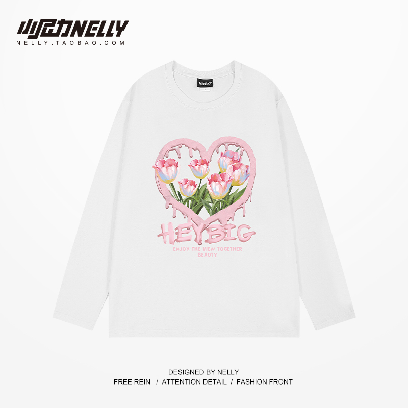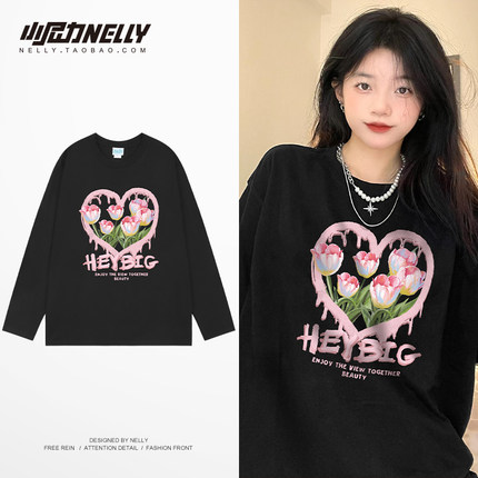 ins花卉男秋季2025新款宽松大码长袖t恤潮牌潮流青少年秋装上衣bf