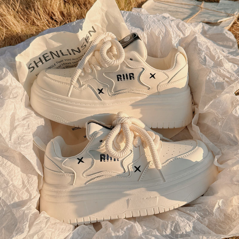 原创小众厚底小白鞋女2025新款春款厚底帆布鞋休闲板鞋运动鞋女鞋