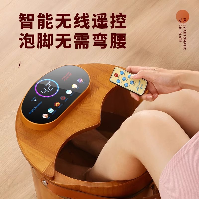 荣事达泡脚桶木桶家用足浴桶全自动按摩加热电动恒温橡木洗脚盆桶