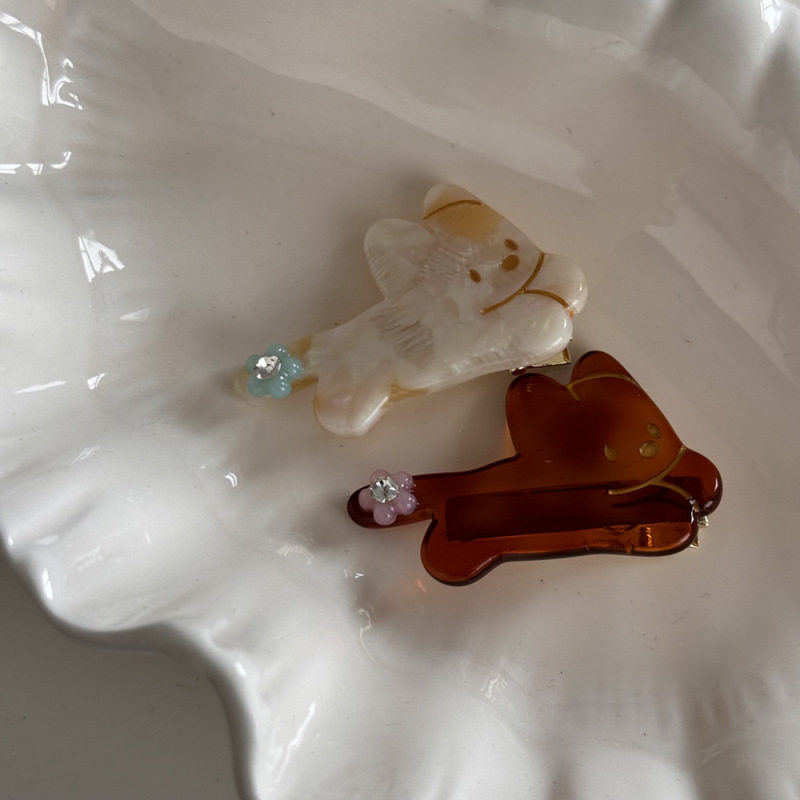 可爱花朵小猫咪醋酸发夹刘海夹创意侧边夹发饰个性卡通头饰发卡女