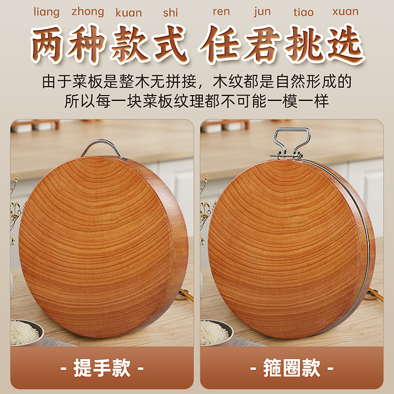 进口铁木切菜板抗菌防霉家用食品级实木砧板家用案板整木圆形菜墩