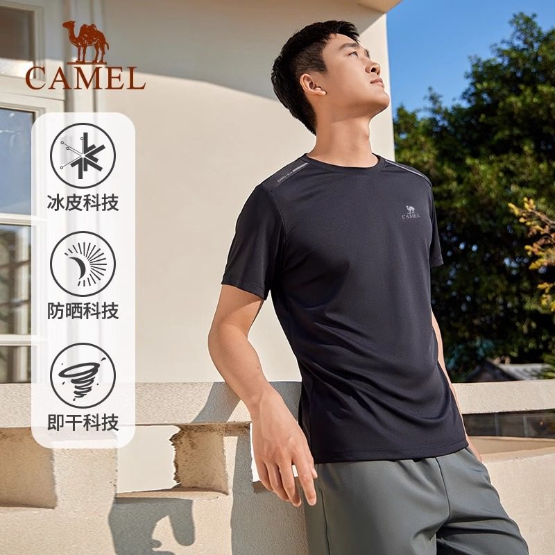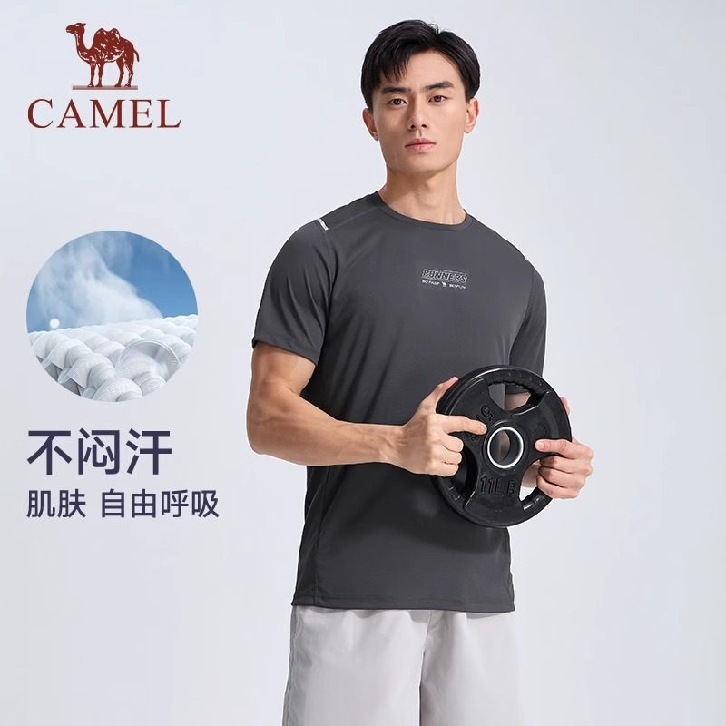 【断码清仓】骆驼运动速干T恤圆领短袖男健身跑步透气休闲上衣女