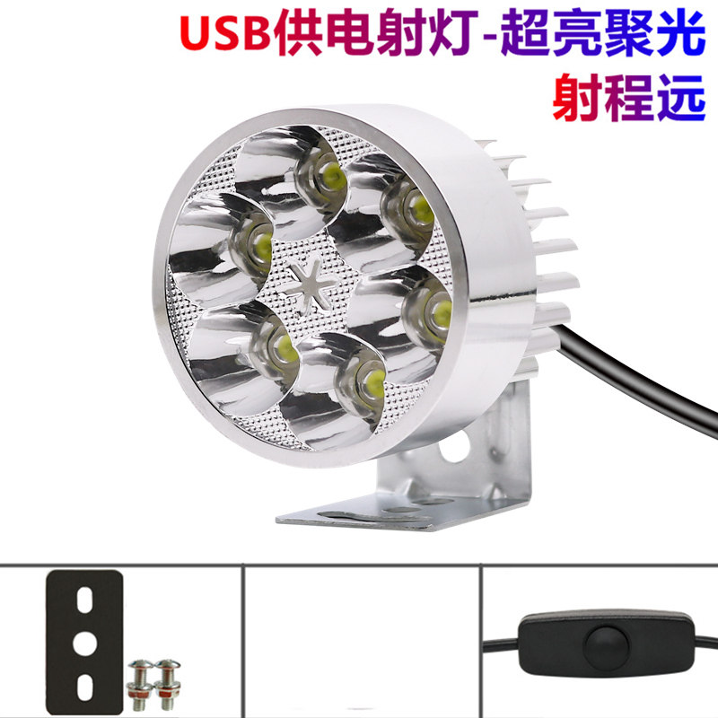 USB车灯5V电动车大灯摩托车led车灯免接线外置防水射灯自行车改装