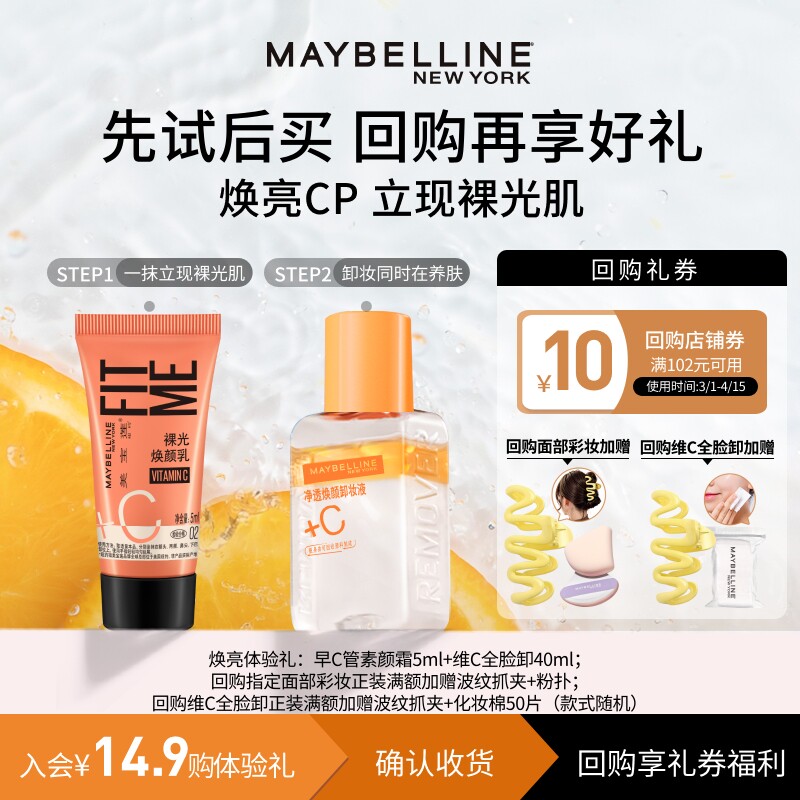 【U先入仓】美宝莲早C管素颜霜小样粉底液bb霜眼唇卸妆液试用装N