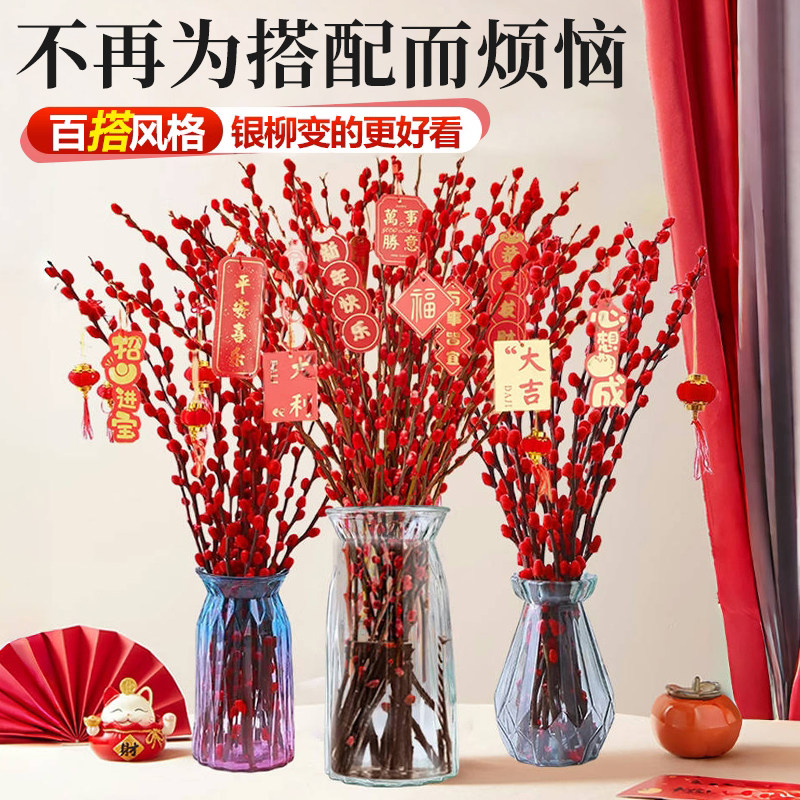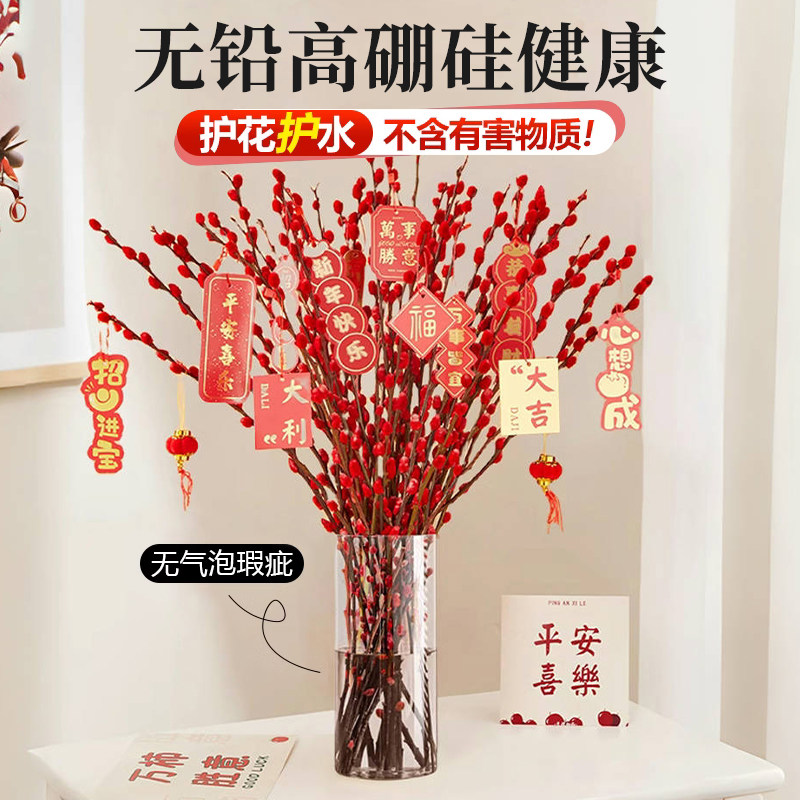 适合插银柳的花瓶摆件客厅水培绿植物鲜花干花年宵花专用大玻璃瓶