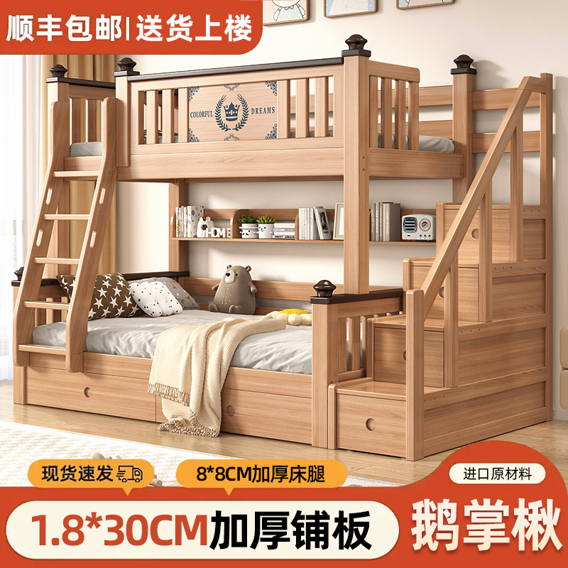 名轩阁鹅掌楸木上下床双层床儿童床可拆分高低床双层子母床上下铺
