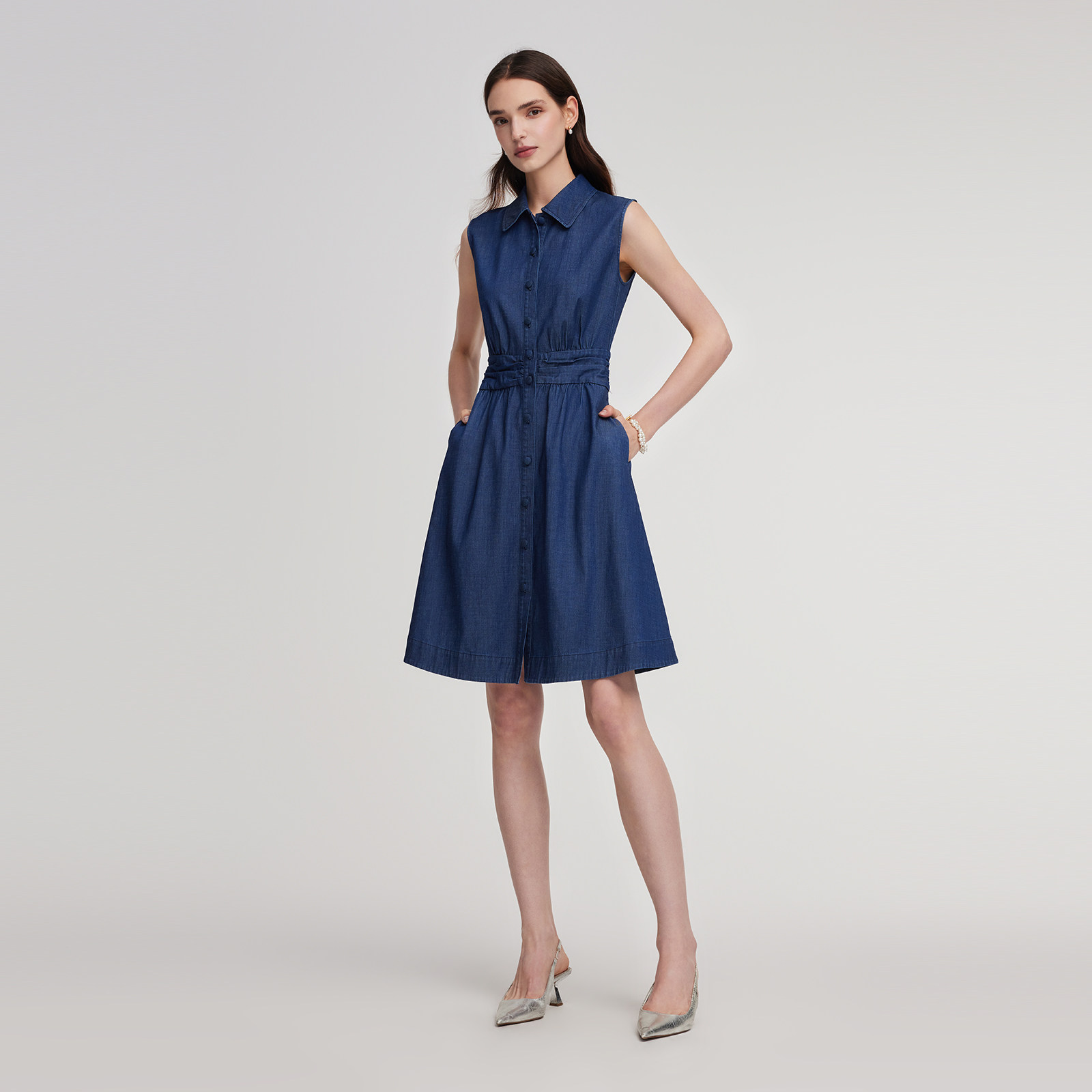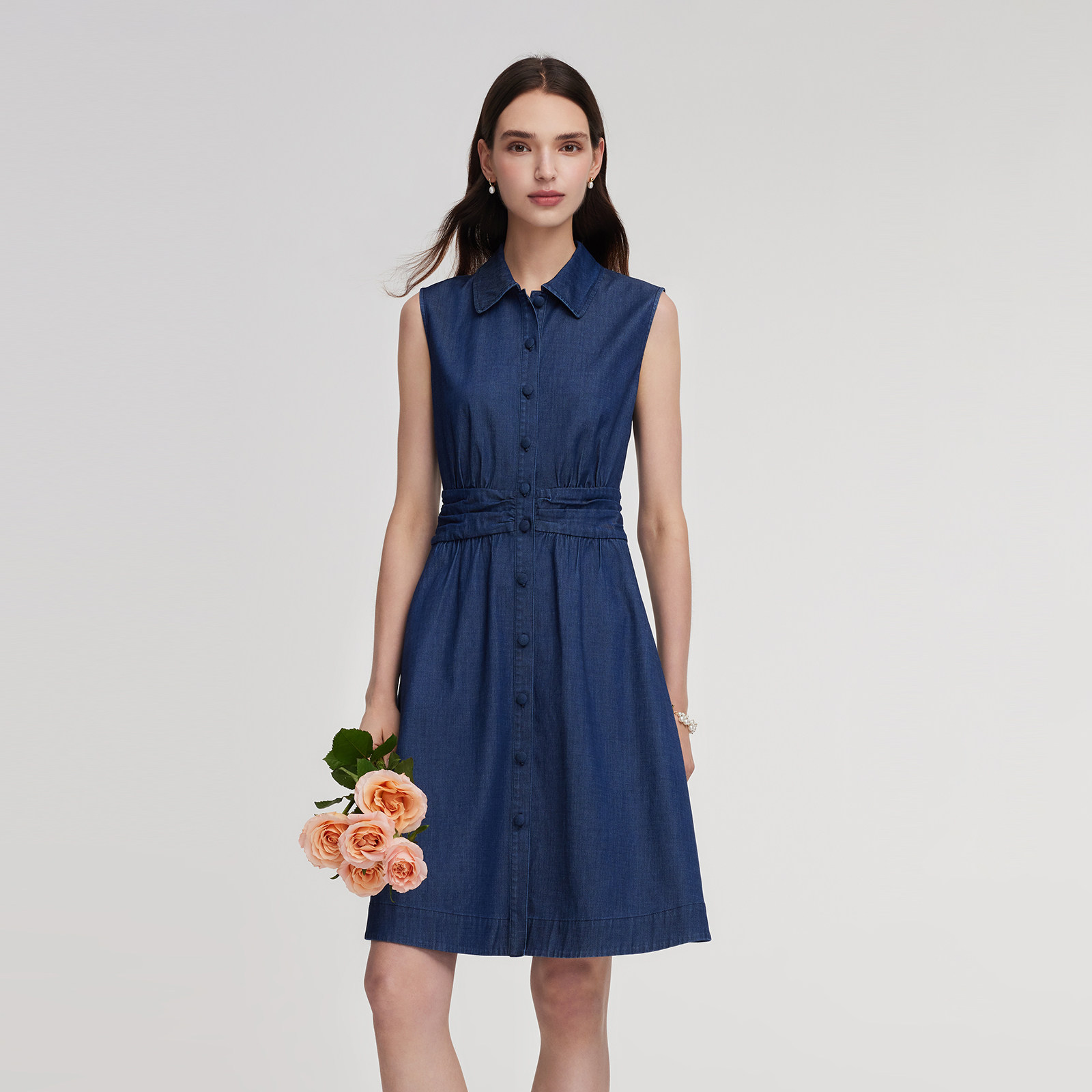 歌莉娅凉感弹力牛仔连衣裙女2026新款春季收腰背心裙子1ENL4J740