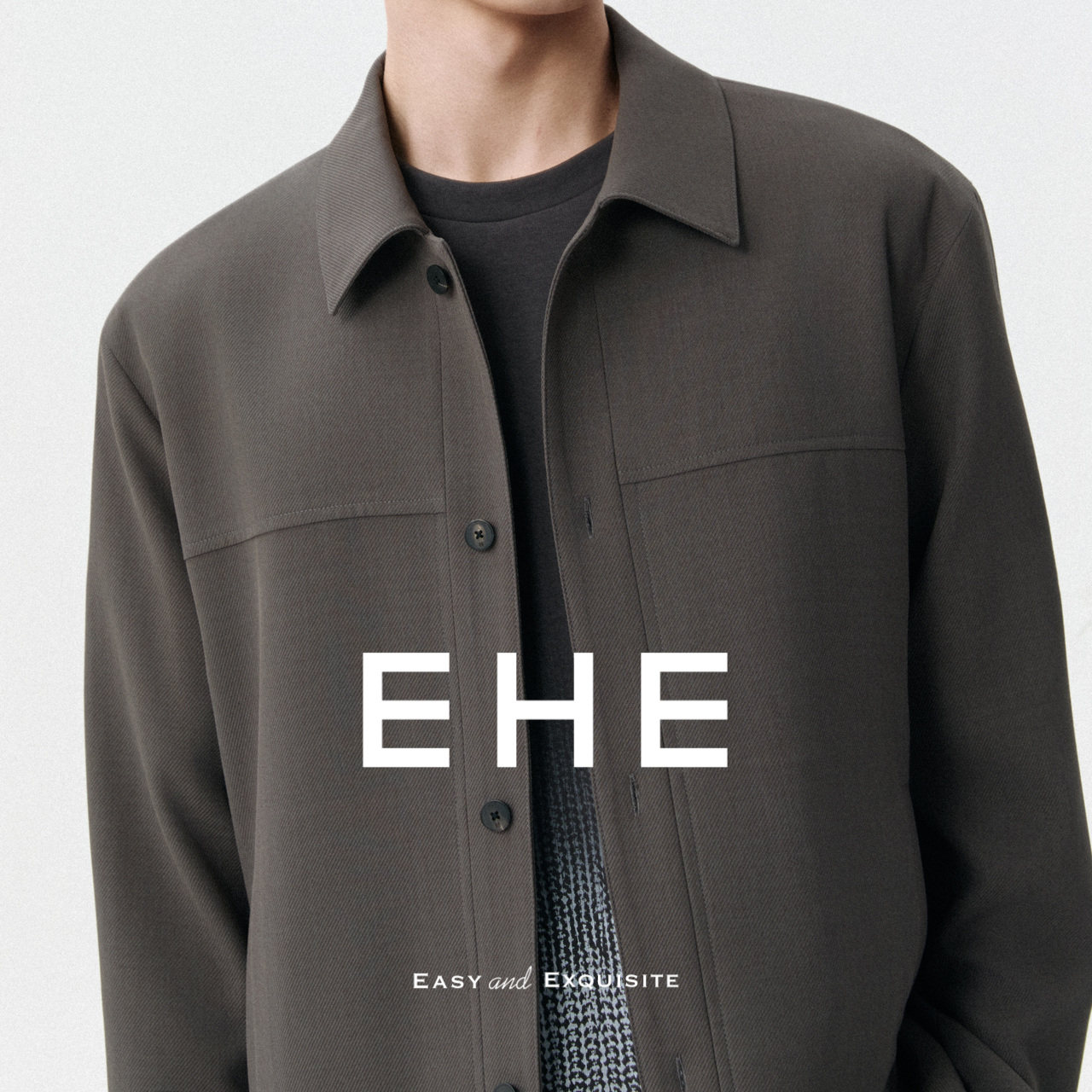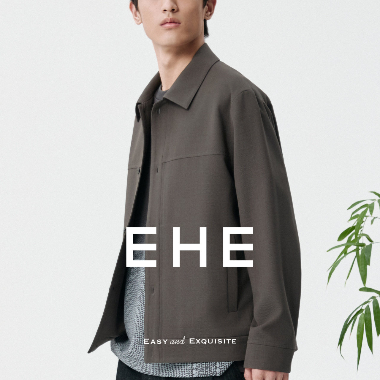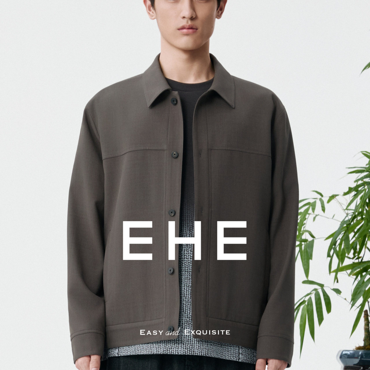 EHE男装复古休闲特色斜纹肌理感翻领落肩夹克外套男2026春季新款
