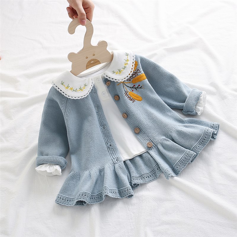 春秋季百搭女宝宝针织开衫1-3儿童洋气绣花婴儿纯棉长袖毛衣外套