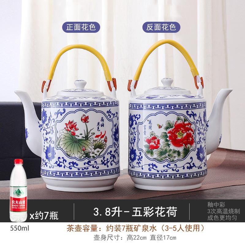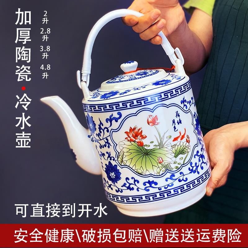 陶瓷耐高温冷水茶壶家用夏天大容量中式凉白开带盖壶随手水杯玻璃