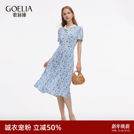 歌莉娅夏季真丝连衣裙碎花裙子女