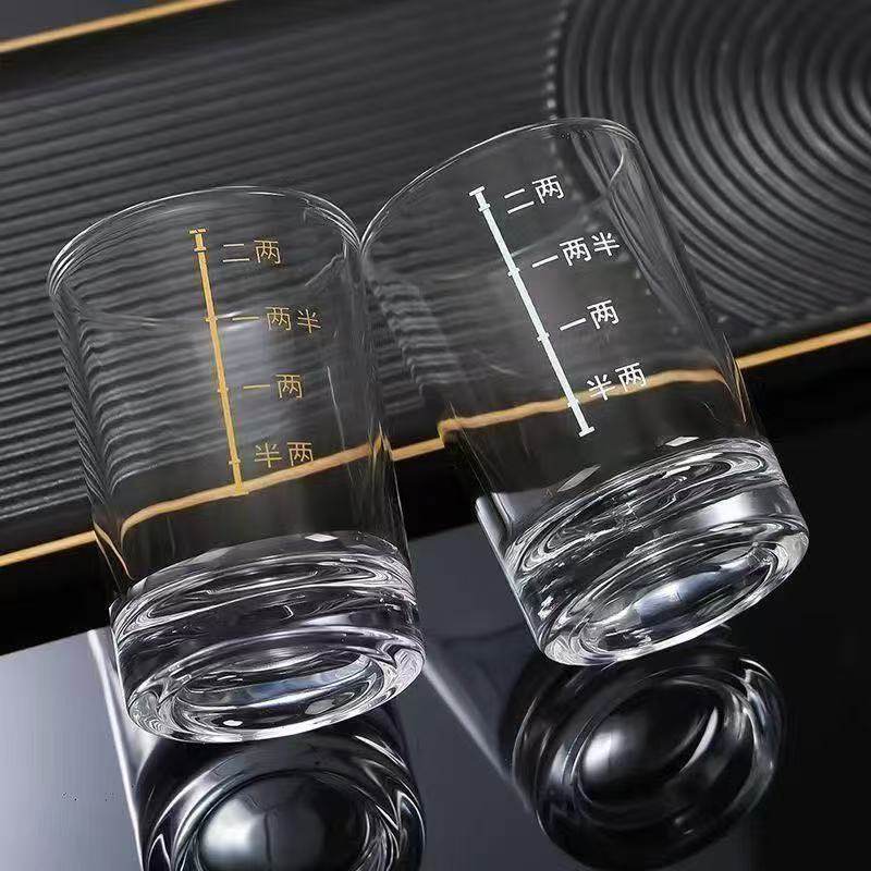 【6只装】二两白酒杯带刻度描金家用钢化玻璃酒具套装2两烈酒杯子