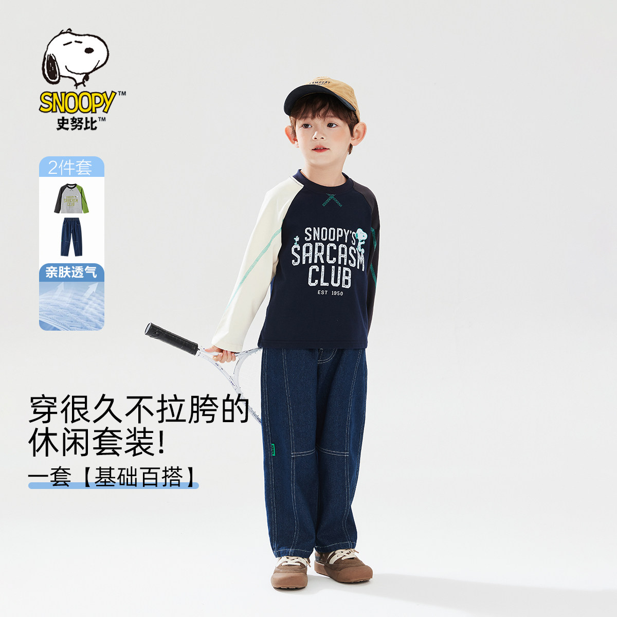 史努比童装男童休闲套装儿童卫衣牛仔裤潮酷两件套2025春夏季新品