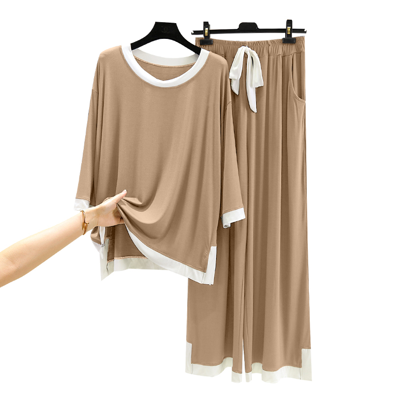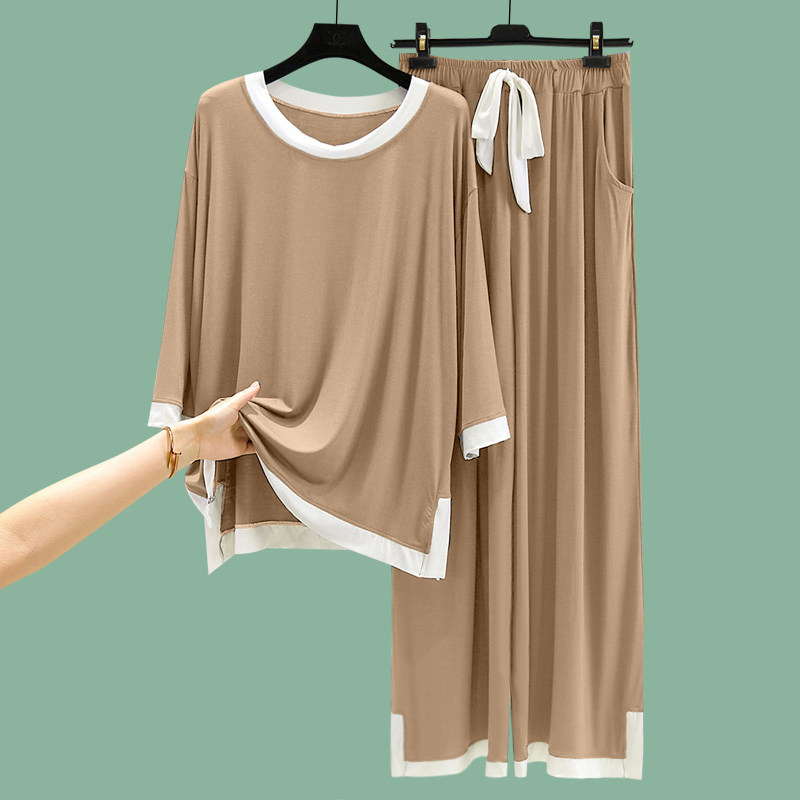 莫代尔打底衫女春秋宽松休闲大码长袖t恤薄套装胖mm内搭显瘦上衣