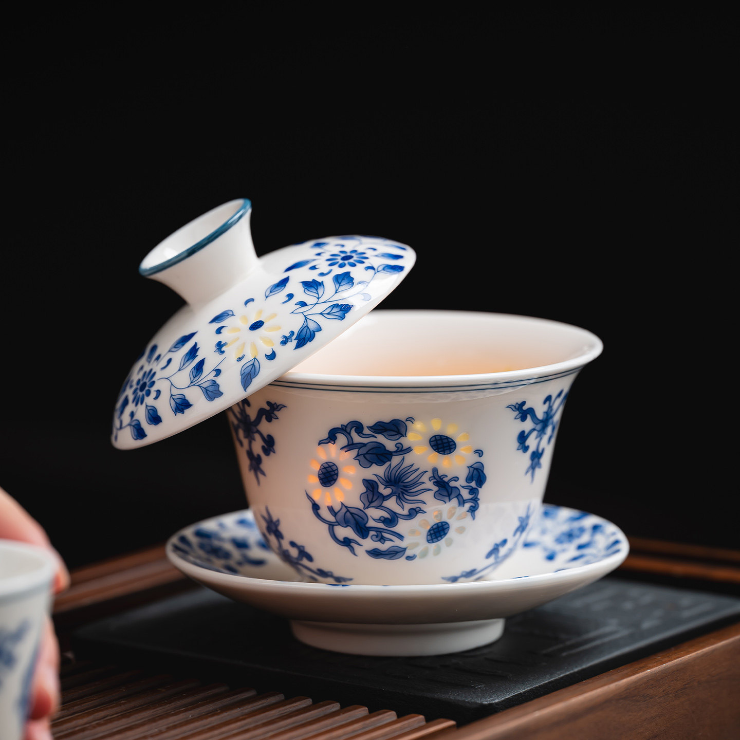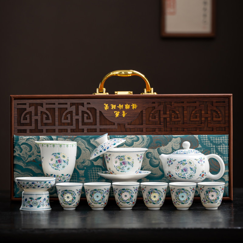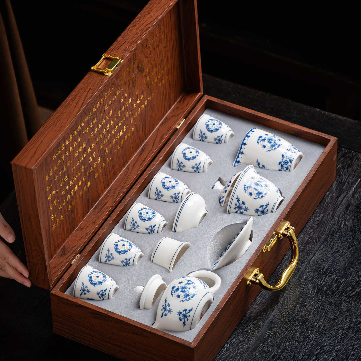 高端青花玲珑瓷功夫茶具套装新款礼盒整装家用送礼陶瓷泡茶壶茶杯