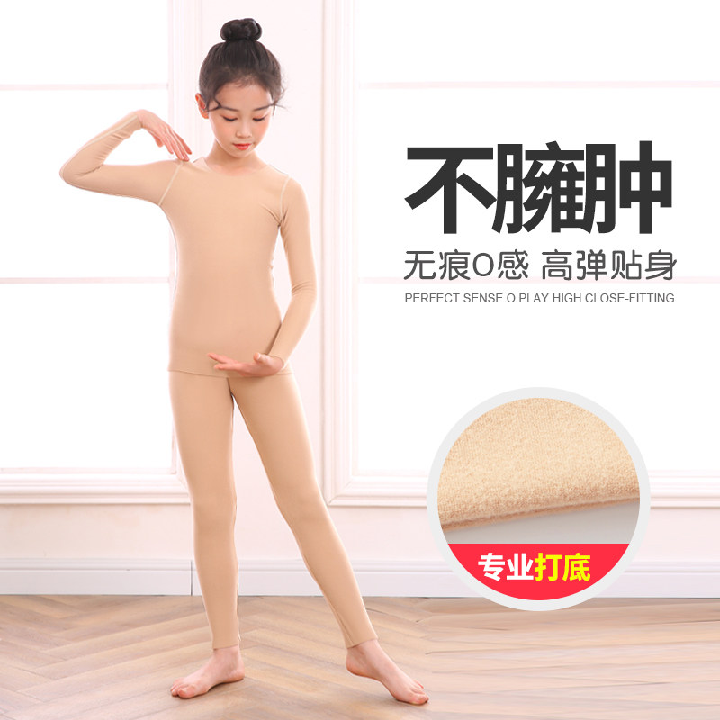 德绒儿童肉色舞蹈隐身衣秋冬季加绒隐形打底衣女童跳舞衣服打底衫