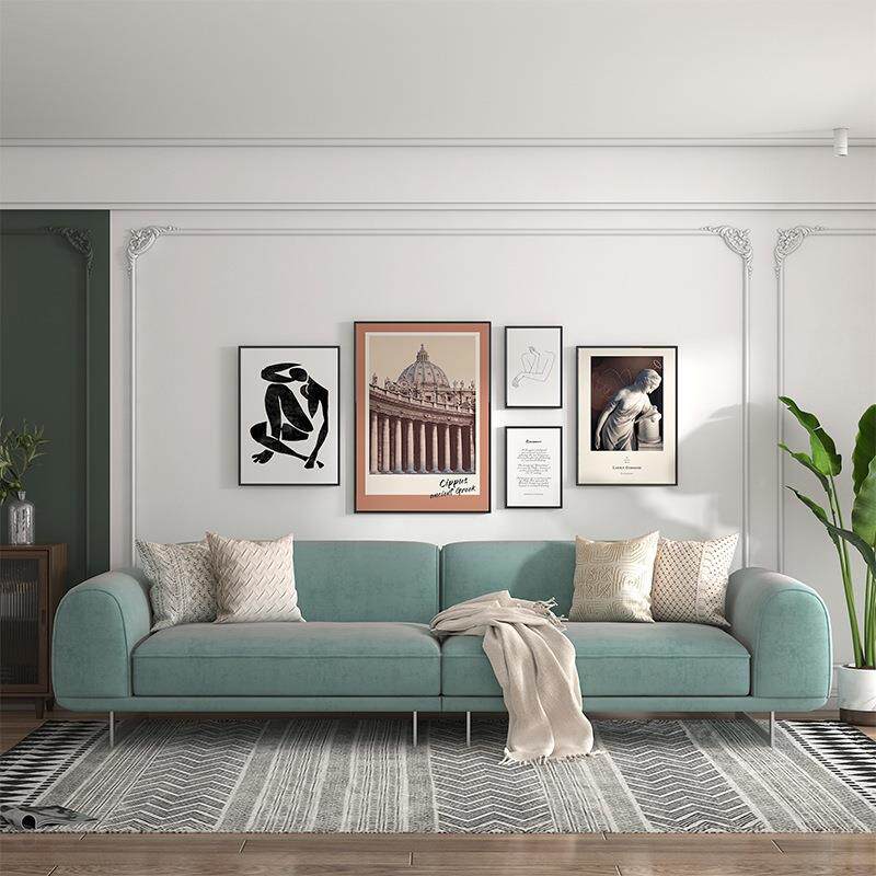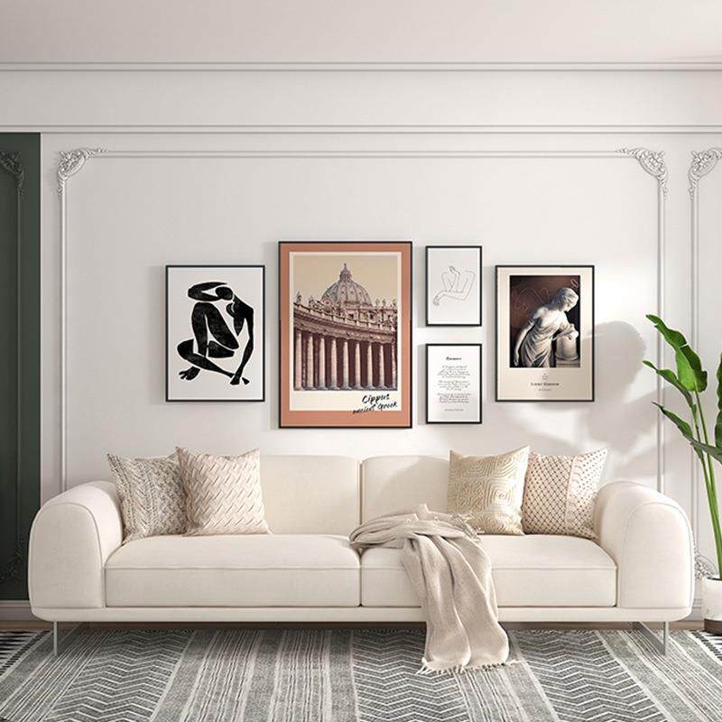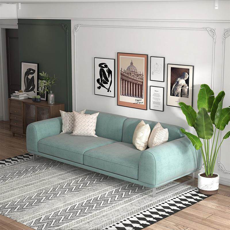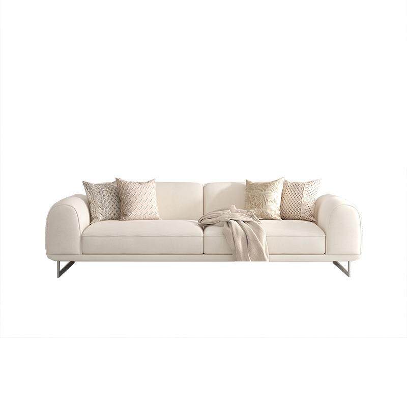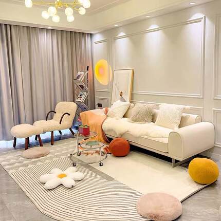奶油系简约北欧公寓客厅大小户型皮艺三人组合软装布艺沙发样板房