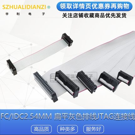 FC6/8/10/16/20/26P IDC2.54mm 扁平灰色排线LED屏连接JTAG下载线