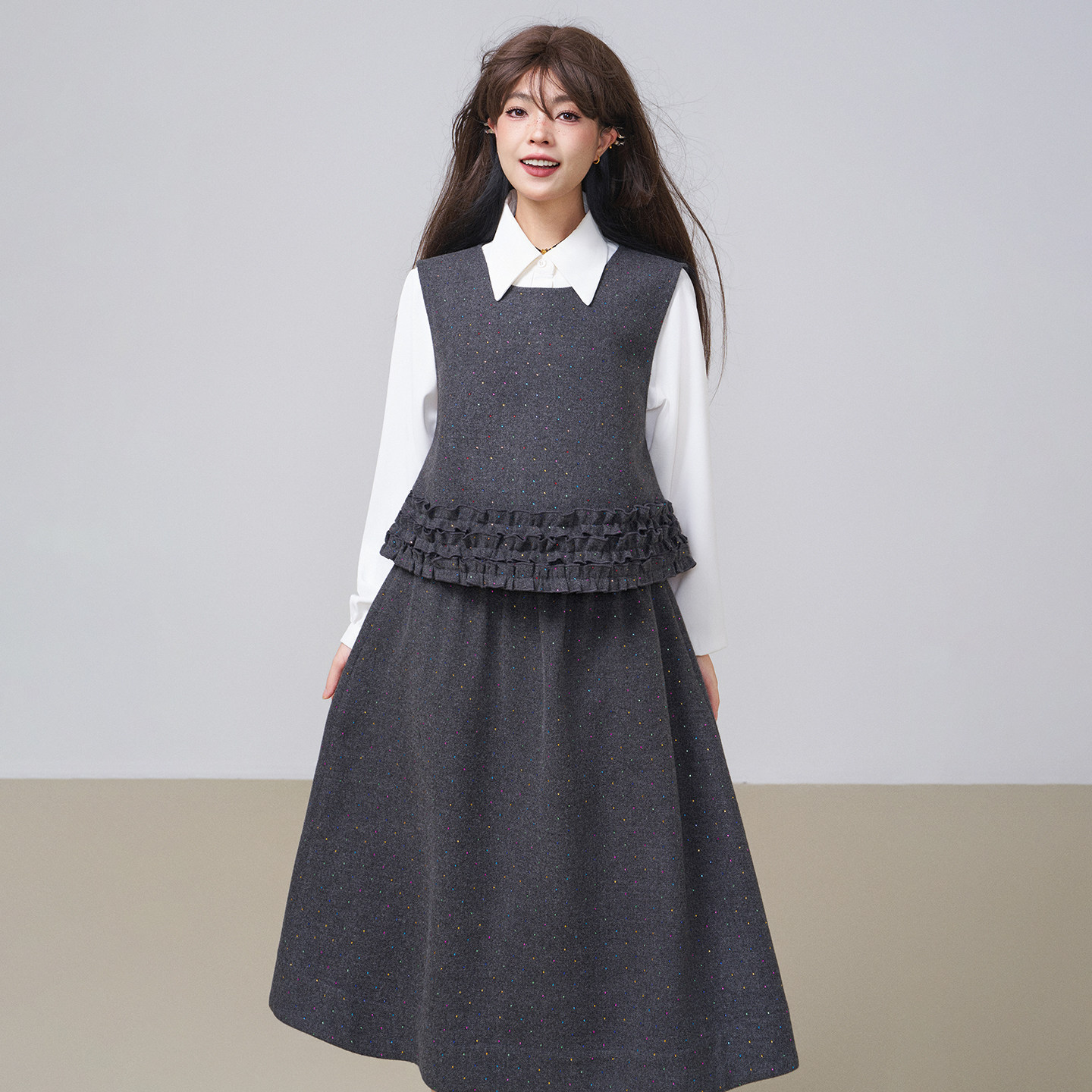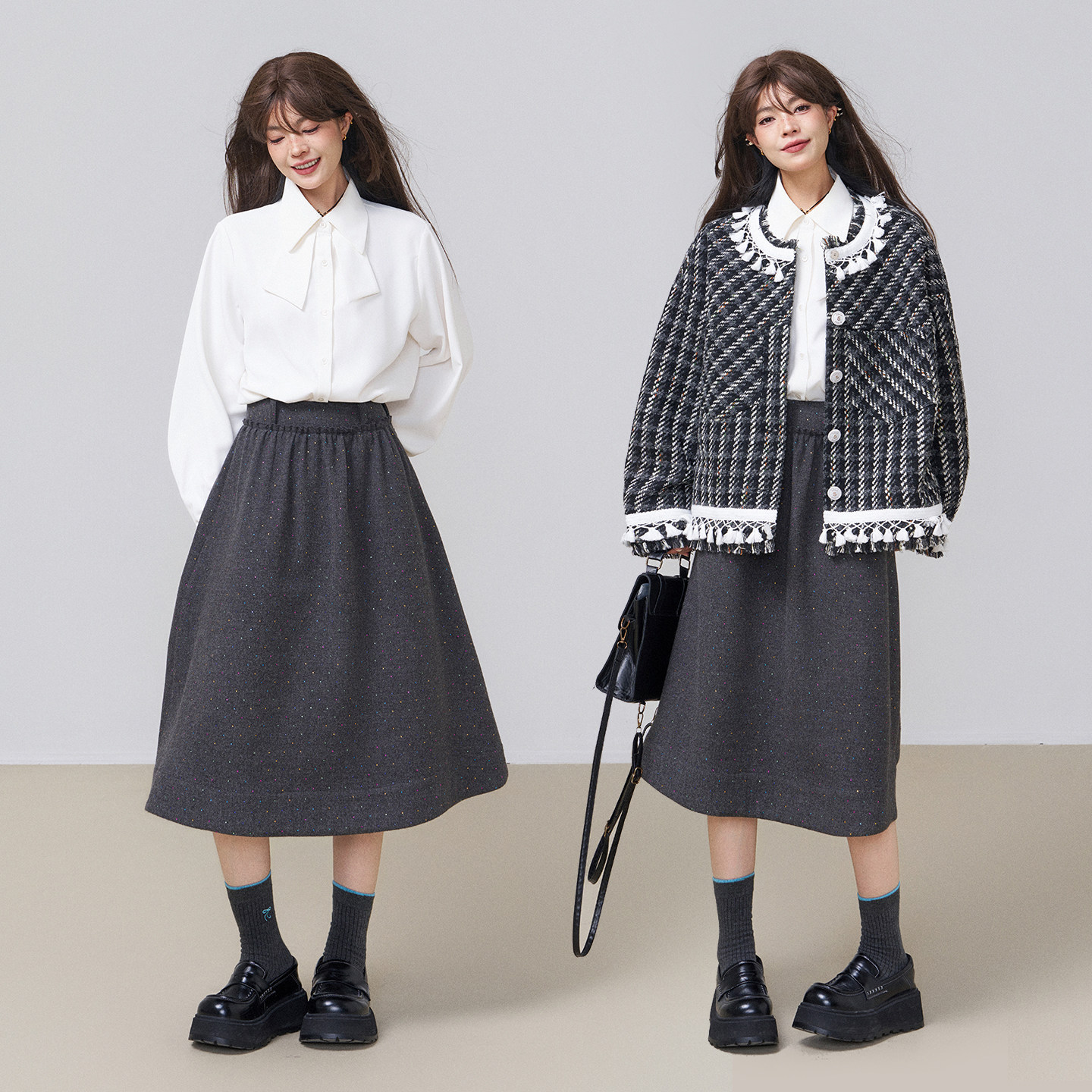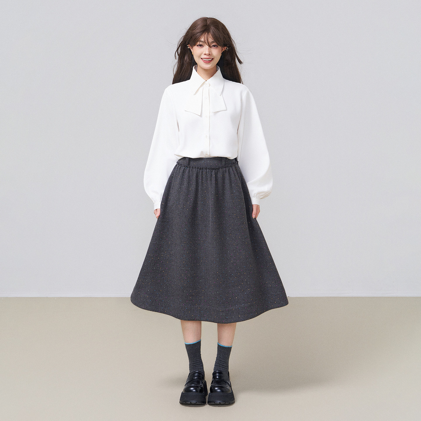 KEIKO 垂感抗皱白色小尖领衬衫2026春季气质通勤职业面试长袖衬衣