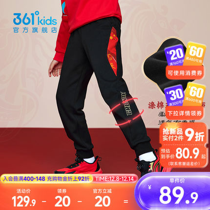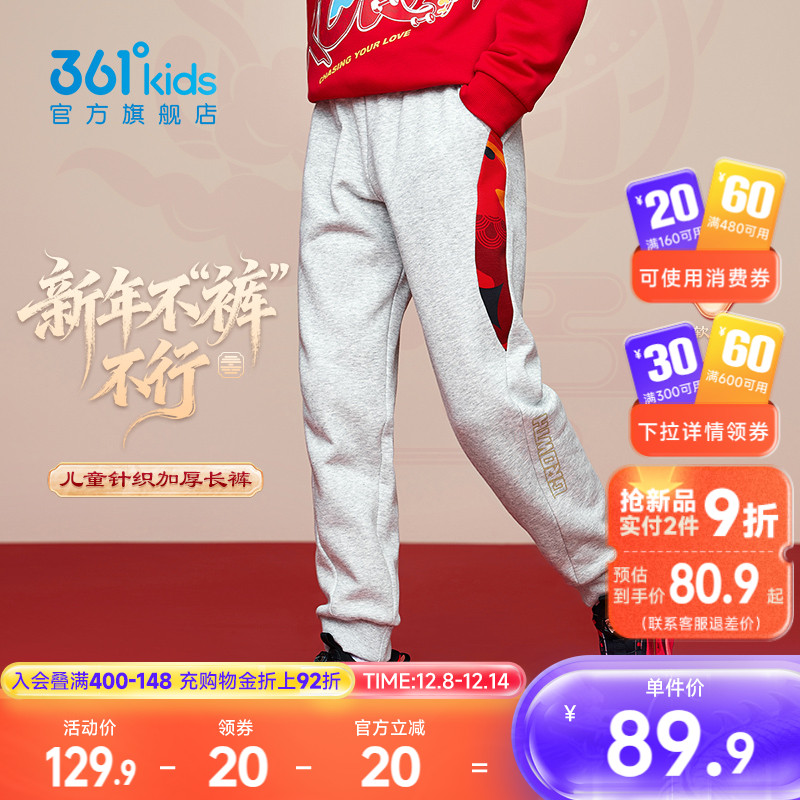 暖热绒|361童装男童针织加绒长裤2025冬季新款新年马年运动裤子