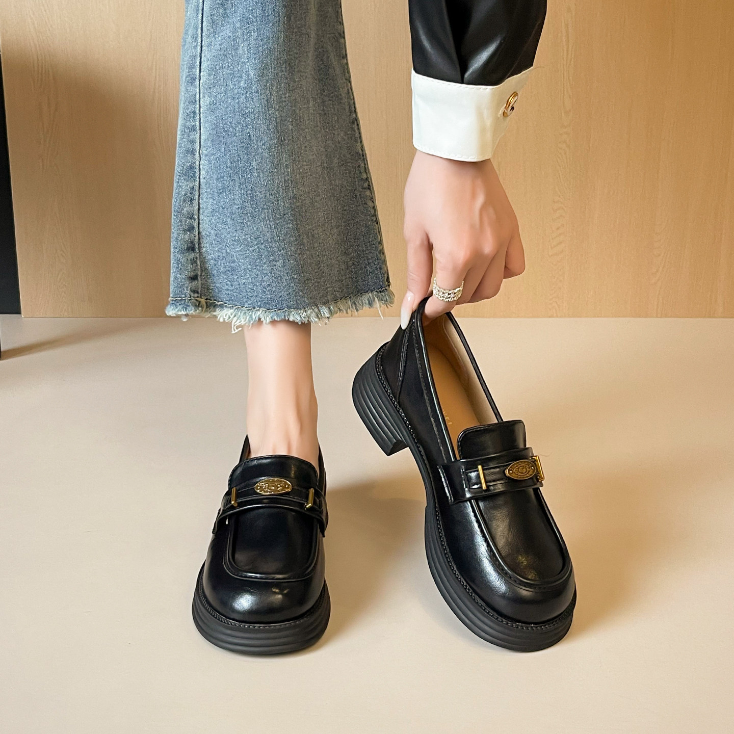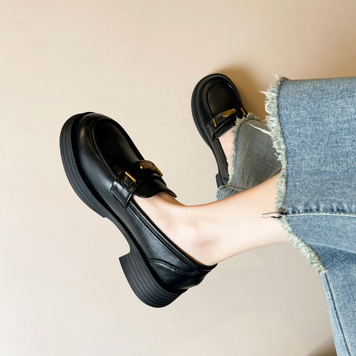 【免费试穿】厚底乐福小皮鞋女