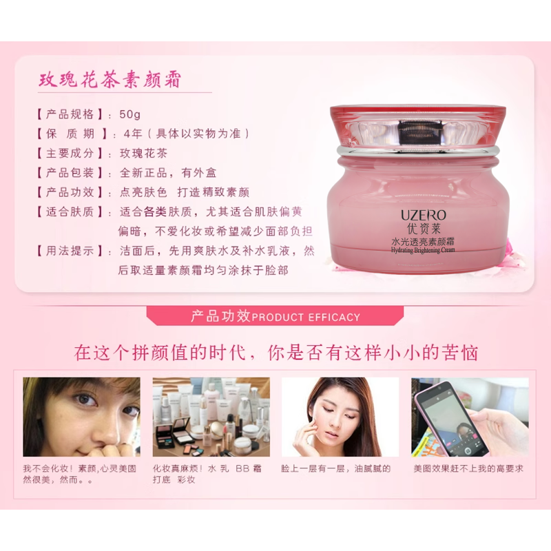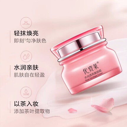 优资莱正品 玫瑰花茶水光透亮素颜霜懒人霜 增白保湿提亮护肤修颜