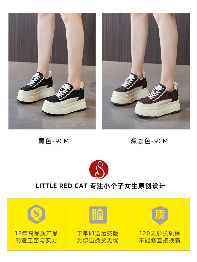 香港隐形内增高9cm小白鞋女2024秋季真皮松糕厚底百搭休闲运动鞋