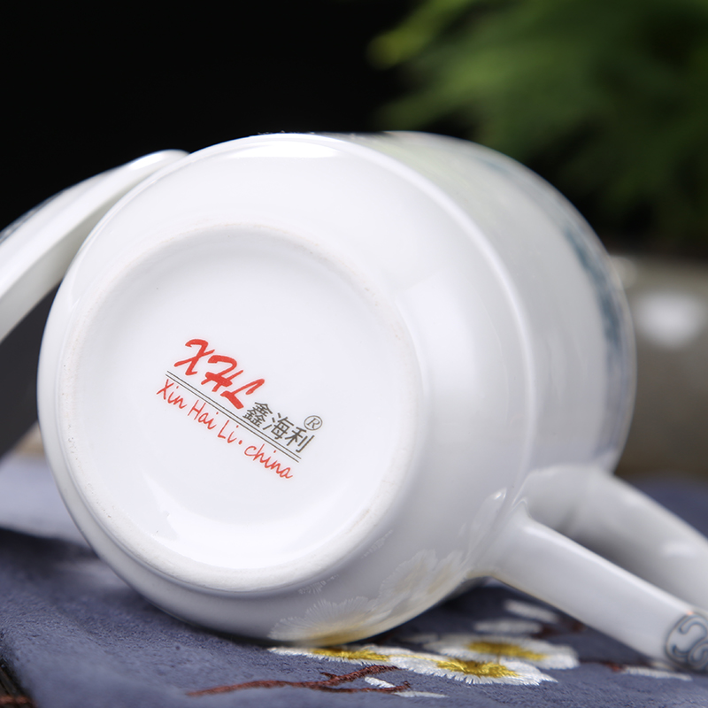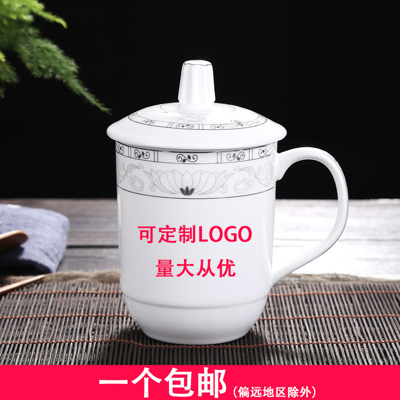 景德镇陶瓷杯子带盖家用茶杯套装酒店宾馆会议杯办公水杯定制10只