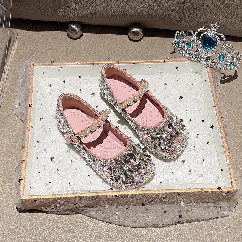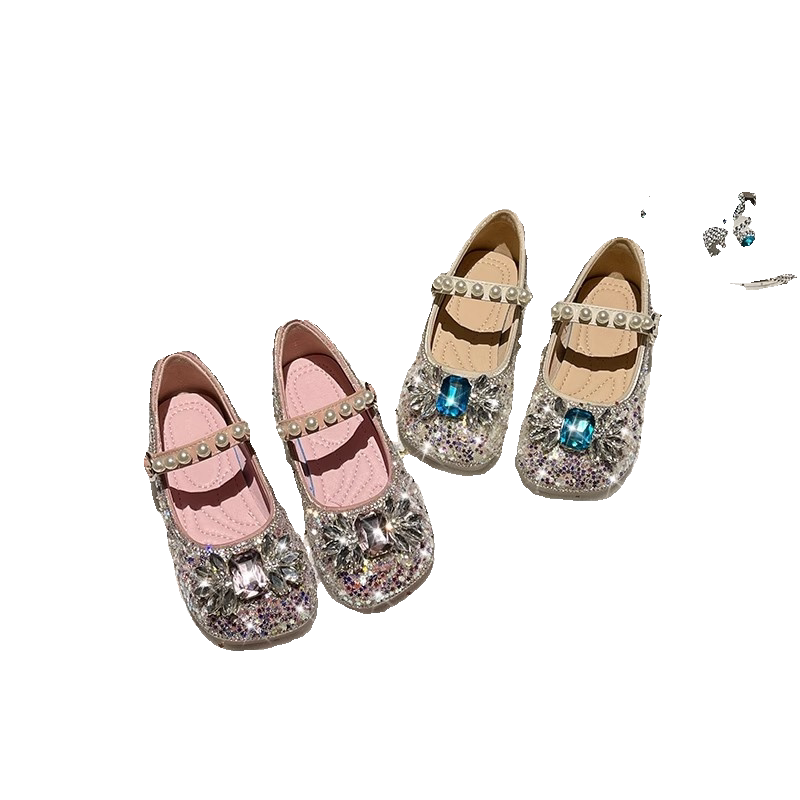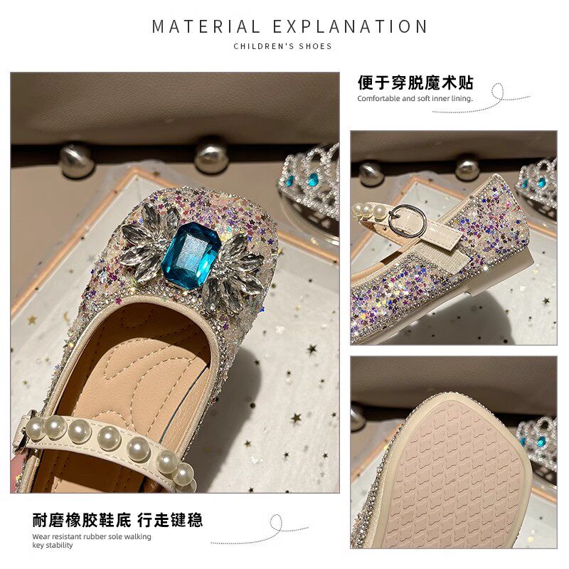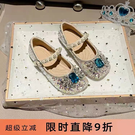 真皮女童单鞋2025春秋新款软底爱莎水晶鞋儿童公主鞋水钻小女孩鞋