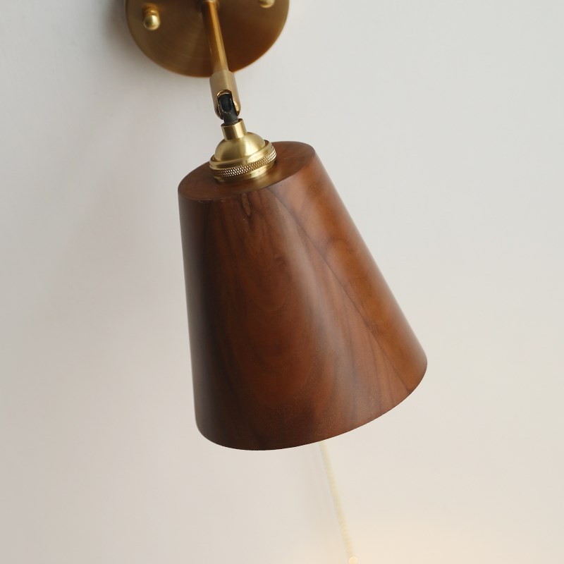 2025新款黑胡桃木拉线壁灯复古民宿床头样板房个性装饰自带开关灯